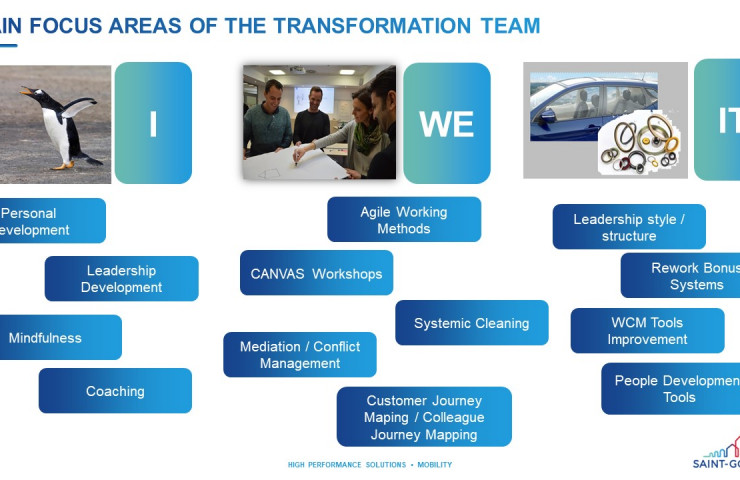 Um die Menschen, unsere Teams und die Organisation auf genau dieser Reise zu unterstützen, entwickelte sich mit der Zeit ein vollständig selbstorganisiertes und fachlich divers aufgestelltes Team: unser Transformationsteam. Dieses Team ist zum Herzstück unserer Transformation geworden. Mittlerweile ist das Team in der Lage über ein vielfältiges Angebot (von Agile Working Methods, über Customer and Colleague Journey Mapping, Shared Leadership, Mindfulness bis hin zu Team- und Indvidual Coaching, ...), nahezu jedes Team so zu unterstützen und zu begleiten, wie es die Umstände gerade erfordern, um so jeden Tag ein Stückchen mehr Autonomie, Sinnhaftigkeit und persönliches Wachstum in der Organisation entstehen zu lassen. Ein besonderer Schwerpunkt des Transformationsteams ist dabei die Arbeit im Bereich Personal Leadership (Innere Arbeit) als Voraussetzung für nahezu Alles andere.
