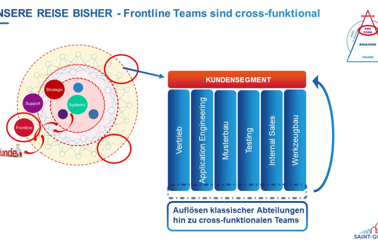 Wir haben uns vor knapp 7 Jahren auf den Weg einer intensiven Transformation unserer Organisation gemacht. Dabei versuchen wir unsere Organisation konsequent aus Kundensicht zu denken und passen unsere Strukturen den Prozessen unserer Kunden kontinuierlich an. Wir sind dabei, starre Abteilungen aufzulösen und in kleinere cross-funktionale Teams mit klarem Kundenfokus zu überführen. Dabei kommt dem Empowering unserer Teams eine besondere Rolle zu. Empowering bedeutet für uns, unsere Teams mehr und mehr zu befähigen, alle relevanten Entscheidungen im Tagesgeschäft direkt innerhalb ihres Teams zu treffen, ohne den Umweg langer Entscheidungsprozesse.