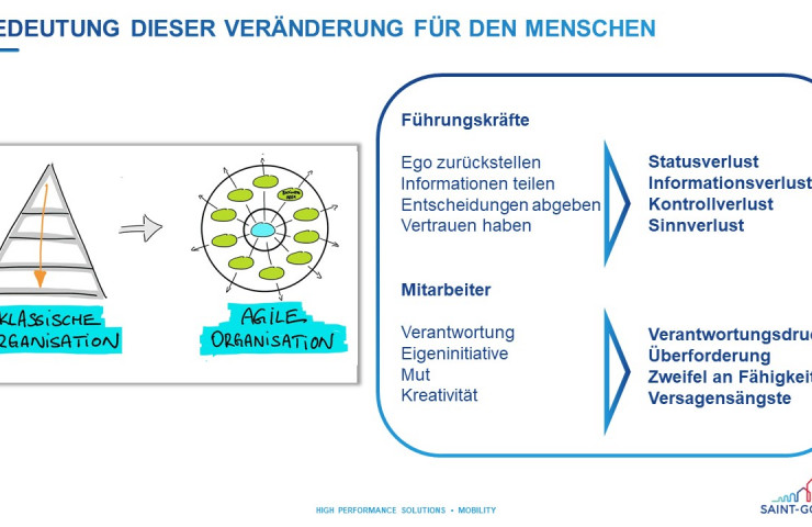 Um eine derartige Transformation erfolgreich zu gestalten und unsere Mitarbeiter nicht zu verlieren, brauchen wir Führungskräfte, Mitarbeiter und Teams, die nicht nur von dem gemeinsamen Weg überzeugt sind, sondern auch emotional in der Lage sind, eine solche Veränderung mitzugehen und mitzugestalten.