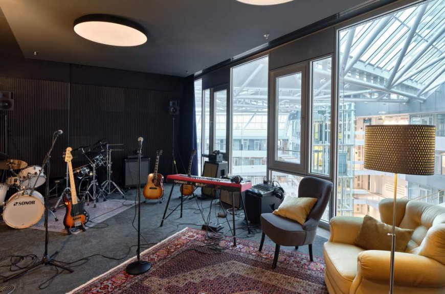 Direkt am Elbufer in der Hamburger Hafencity ist der NEW WORK Harbour, die neue Zentrale der NEW WORK SE entstanden. Am 16. September wurde das ehemalige Unilever-Gebäude nach einer aufwendigen Umgestaltung eröffnet und bietet nun allen über 900 Hamburger Mitarbeiterinnen und Mitarbeitern des Unternehmens eine der attraktivsten Arbeitsumgebungen Deutschlands. Bei der Konzeption der Räume flossen viele Wünsche und Ideen der Mitarbeitenden ein. So ermöglicht das neue Headquarter in verschiedenen Workspaces einen starken Fokus auf Zusammenarbeit, Dialog und Kommunikation. Zusätzlich wurden aber auch mehr als ein Dutzend Räumlichkeiten zur Ablenkung, Entspannung und Kontemplation geschaffen - inklusive Proberaum für die hauseigene Band (s. Fotos unten).