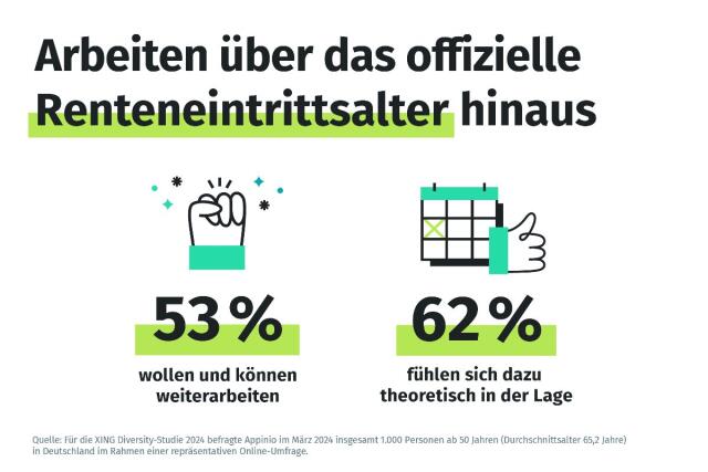 Die XING Diversity-Studie 2024 zeigt, dass 62 Prozent der Befragten sich gesundheitlich in der Lage fühlen, auch nach dem Rentenalter weiterzuarbeiten. Für 53 Prozent dieser Gruppe ist die Arbeit nicht nur eine Frage der Möglichkeit, sondern auch der Motivation. Diese Bereitschaft zur Weiterarbeit könnte ein entscheidender Faktor im Kampf gegen den Fachkräftemangel sein. Dr. Julian Stahl, Arbeitsmarktexperte bei XING, betont: „In Zeiten des Fachkräftemangels ist es ökonomisch nicht rational, auf dieses Potenzial zu verzichten. Gerade in Engpassbranchen ist die Erfahrung, die ältere Beschäftigte mitbringen, unverzichtbar. Mit attraktiven Angeboten, wie z. B. flexiblen Arbeitszeitmodellen insbesondere für Ältere, können Unternehmen Engpässe abfedern und dadurch langfristig wettbewerbsfähig bleiben."