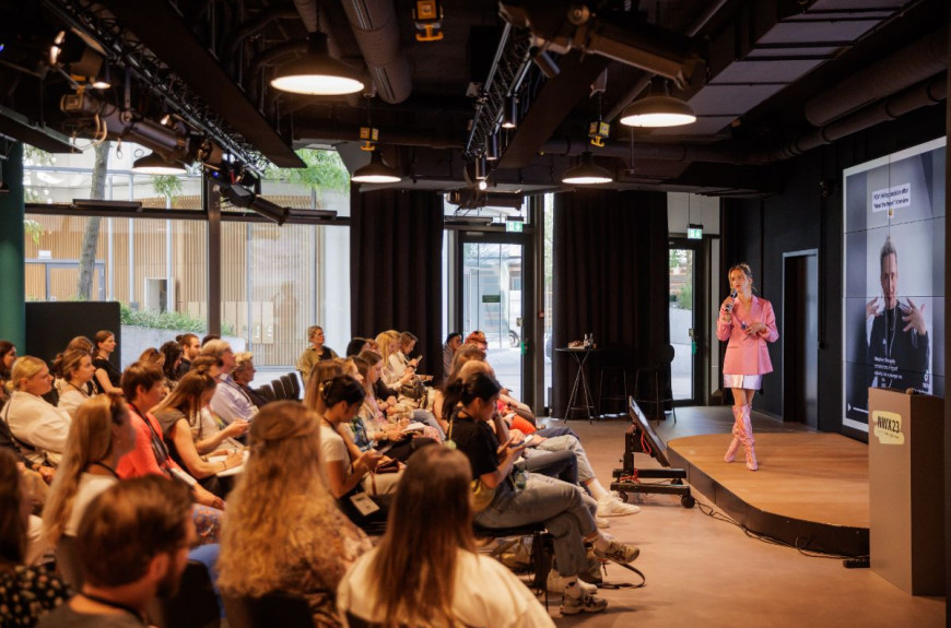 Mit zahlreichen Masterclasses, Panels, Workshops und Keynotes ging das vielfältige Programm den ganzen Tag über weiter. An das Thema altersübergreifende Zusammenarbeit knüpfte auch die Keynote der Generationenforscherin Dr. Eliza Filby an, die erläuterte, wie sich die Perspektivenvielfalt verschiedener Altersgruppen unter einem Dach führen lässt. Ihr Fazit: Es funktioniert, aber man muss daran arbeiten.