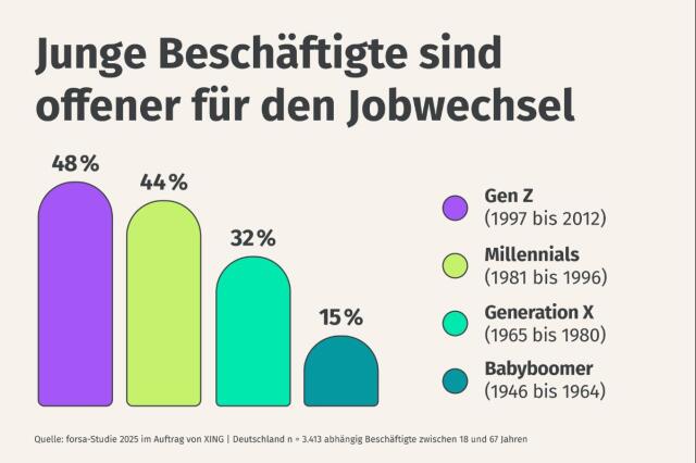 Trotz eines im Vergleich früherer Jahre deutlich unsicheren Arbeitsmarkts bleibt die Wechselbereitschaft unter Beschäftigten in Deutschland hoch: Rund ein Drittel der Befragten zieht einen Wechsel des Arbeitgebers in Betracht oder hat bereits konkrete Schritte dafür eingeleitet. Besonders auffällig ist, dass jüngere Arbeitnehmerinnen und Arbeitnehmer deutlich wechselwilliger sind als ältere.