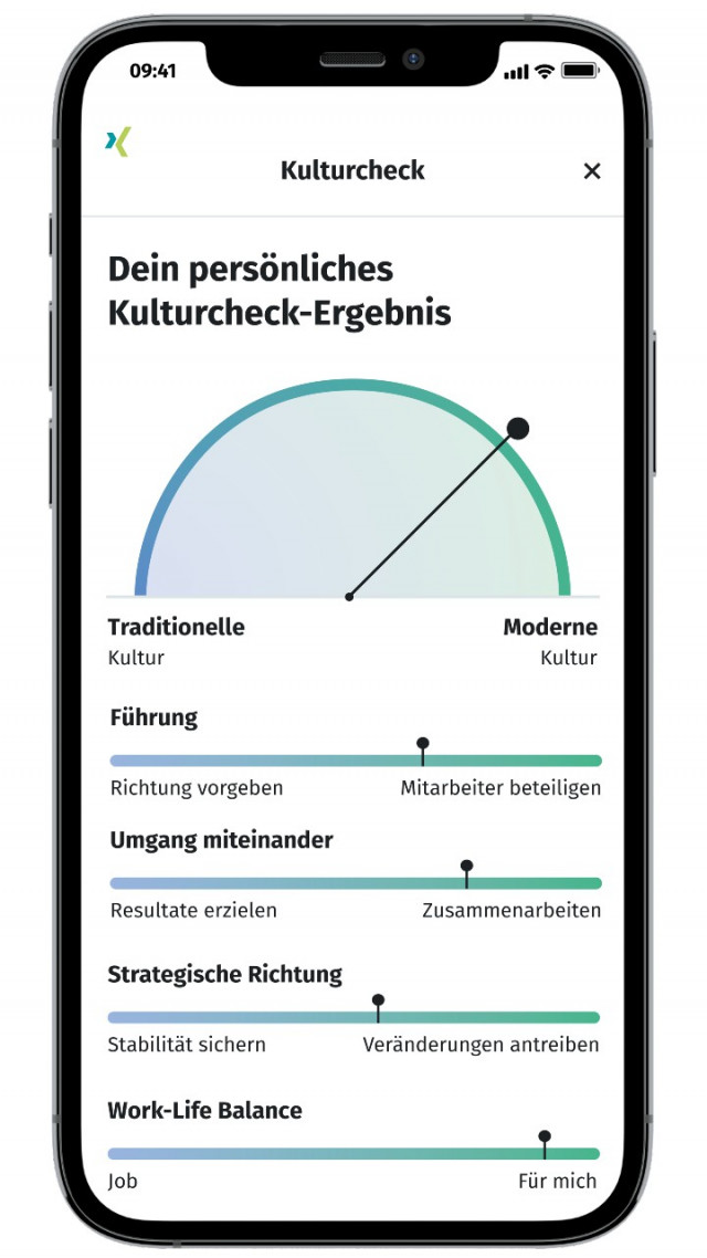 Orientierung neben dem neuen Kulturcheck bietet auch der Kulturkompass im XING Stellenmarkt, der bereits in mehr als 300.000 Stellenanzeigen auf XING integriert ist Dieser gibt ebenfalls Auskünfte über die Unternehmenskultur der jeweiligen Arbeitgeber. Der neue Kulturcheck steht ab sofort allen XING Mitgliedern kostenlos unter https://www.xing.com/via/career-guidance/company-culture-preferences/assessment zur Verfügung.